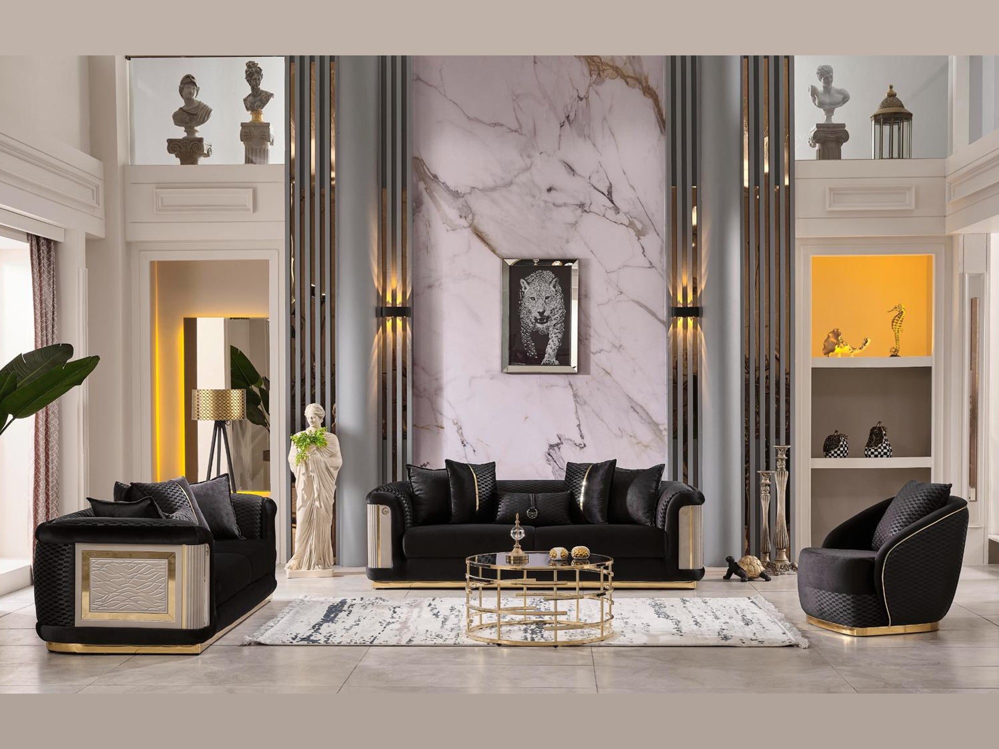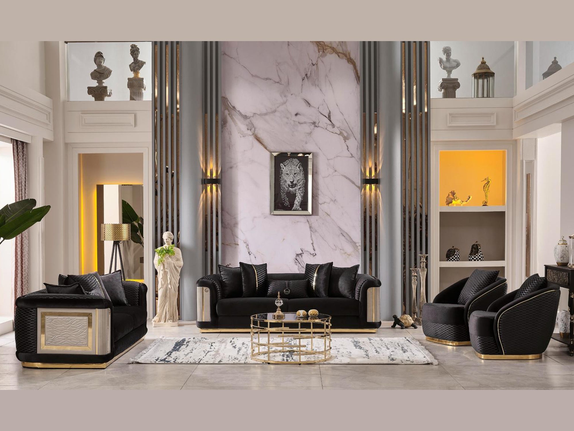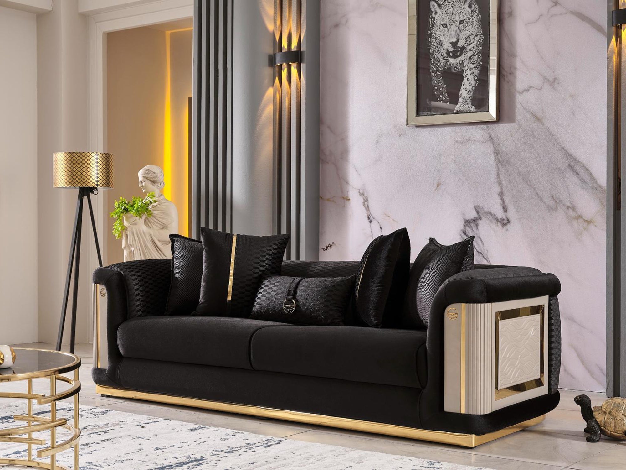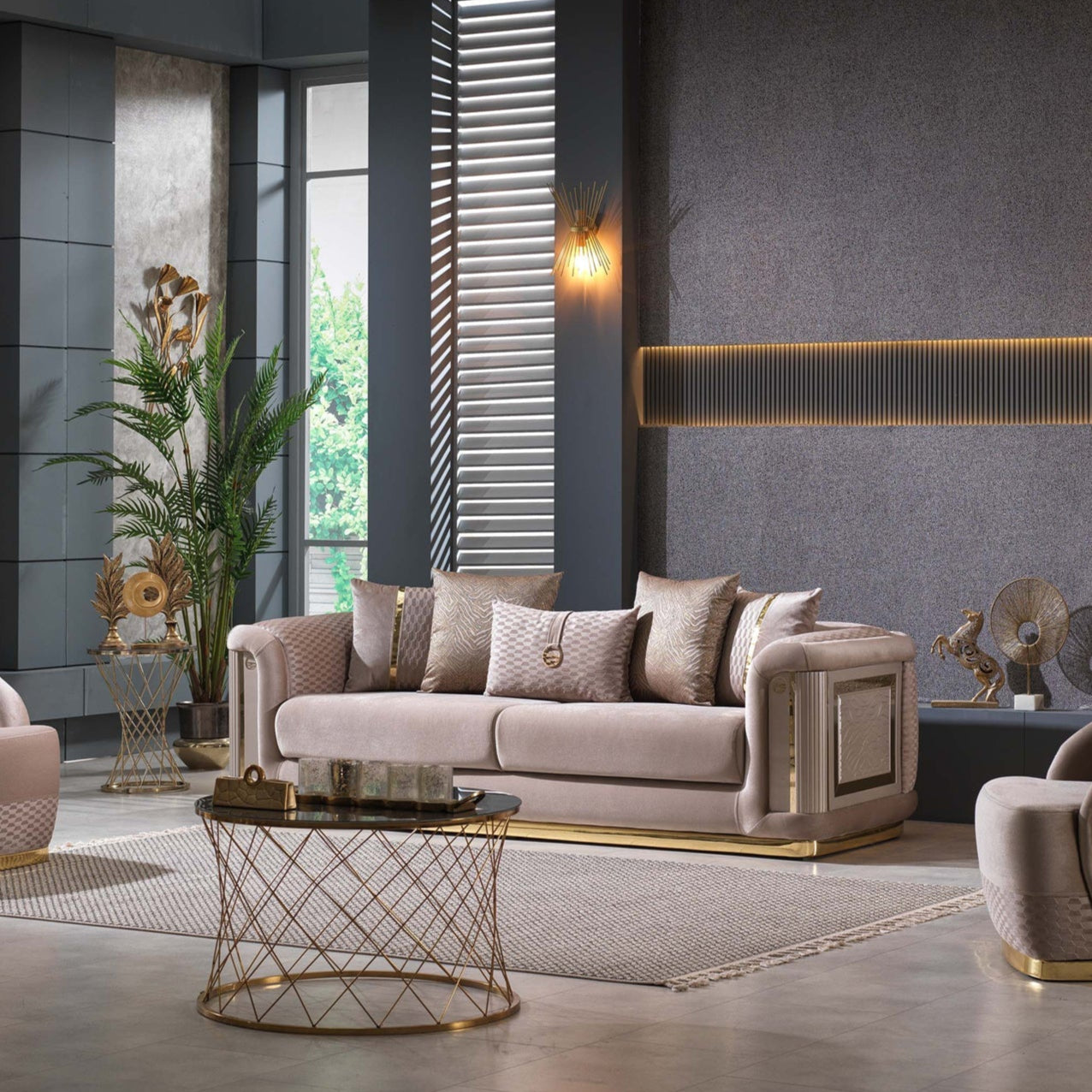 The Elegance Sofa Set represents a design where elegance and luxury converge through gold details. This sofa set, combining aesthetics and comfort, not only adds a personalized touch to your home but also offers a dazzling atmosphere.