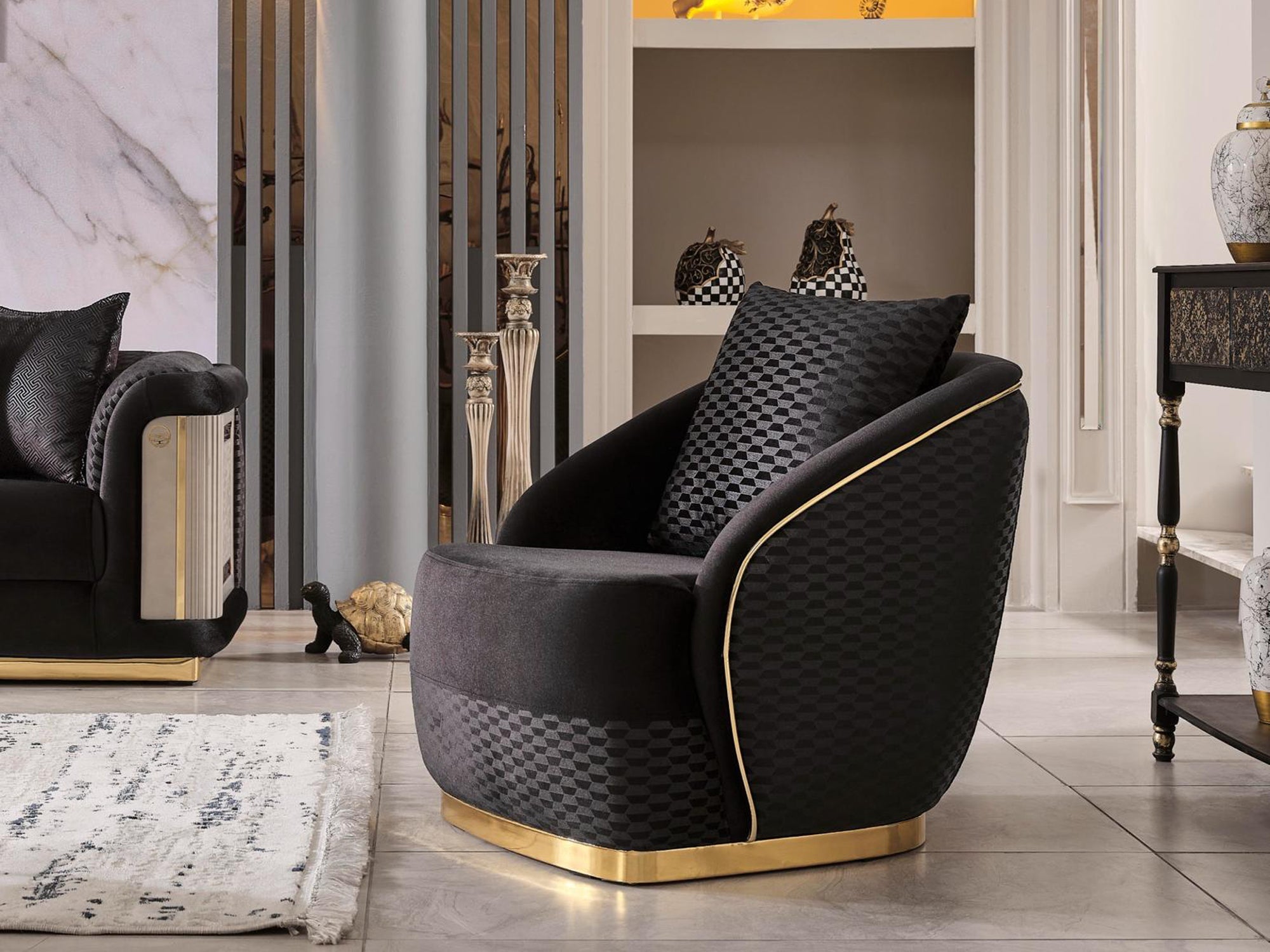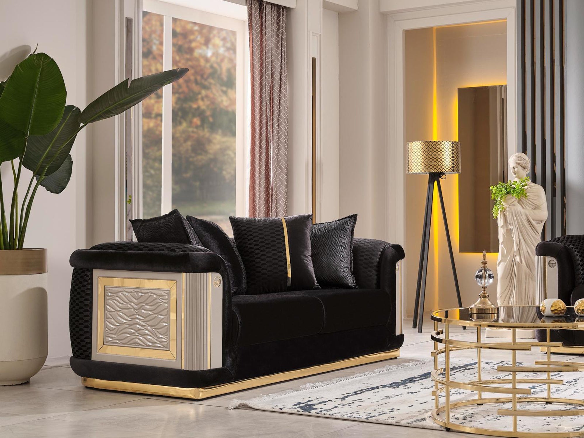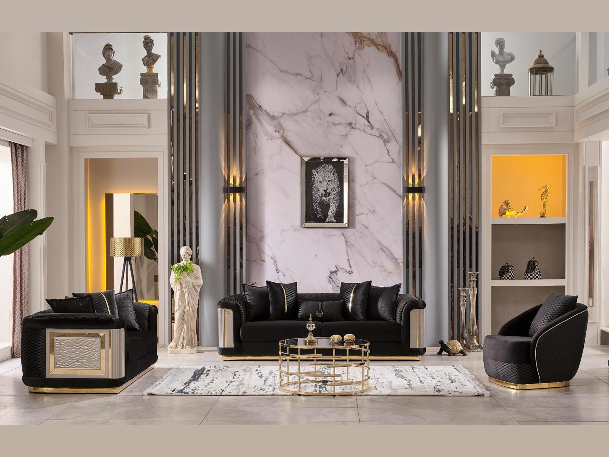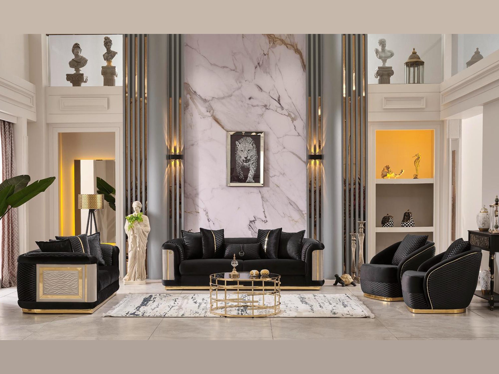 The Elegance Sofa Set represents a design where elegance and luxury converge through gold details. This sofa set, combining aesthetics and comfort, not only adds a personalized touch to your home but also offers a dazzling atmosphere.