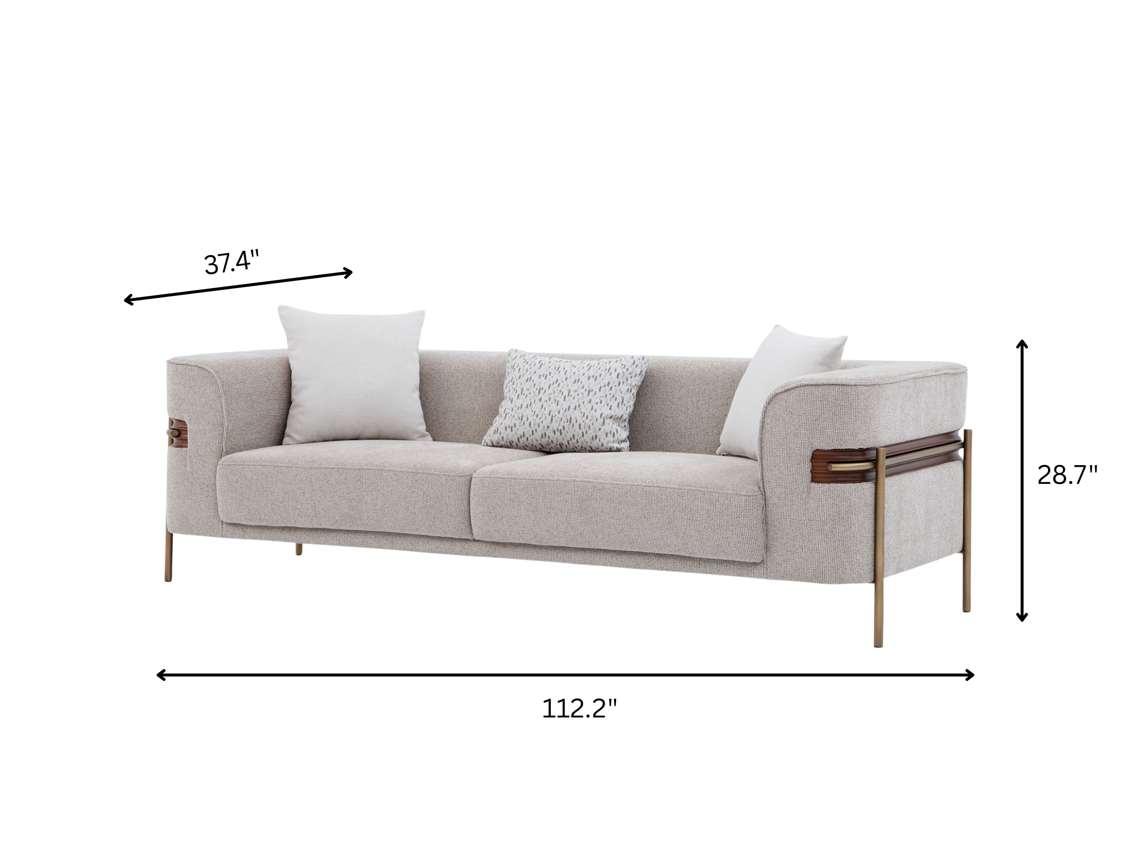 The Elisha modern sofa set features a clean, balanced design with soft neutral tones and refined details that elevate any living space. Built with a solid wood frame and finished with gold-tone metal legs, it offers both durability and understated elegance.