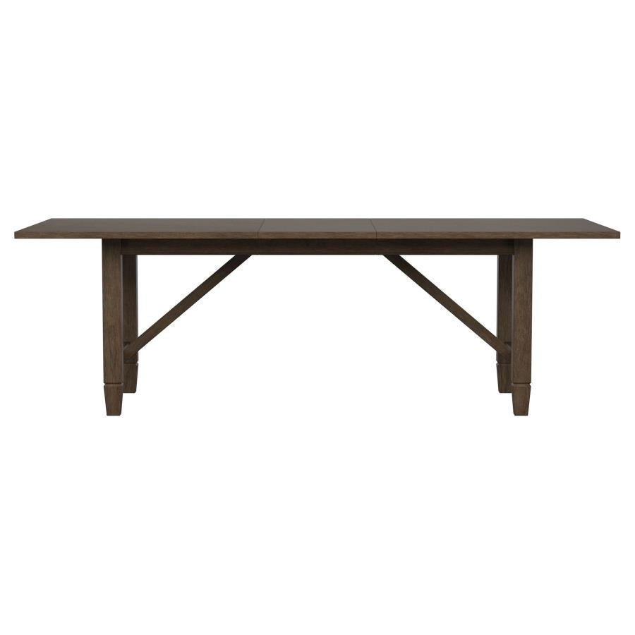 Bring warmth and texture to your dining space with the Haven Dining Set. Crafted from Asian hardwood in a soft brown finish, the table includes an 18-inch extension leaf for added seating. Chairs feature light rattan backs and plush beige upholstered seats, blending comfort with natural charm. A trestle-style base adds a modern touch to this inviting set.