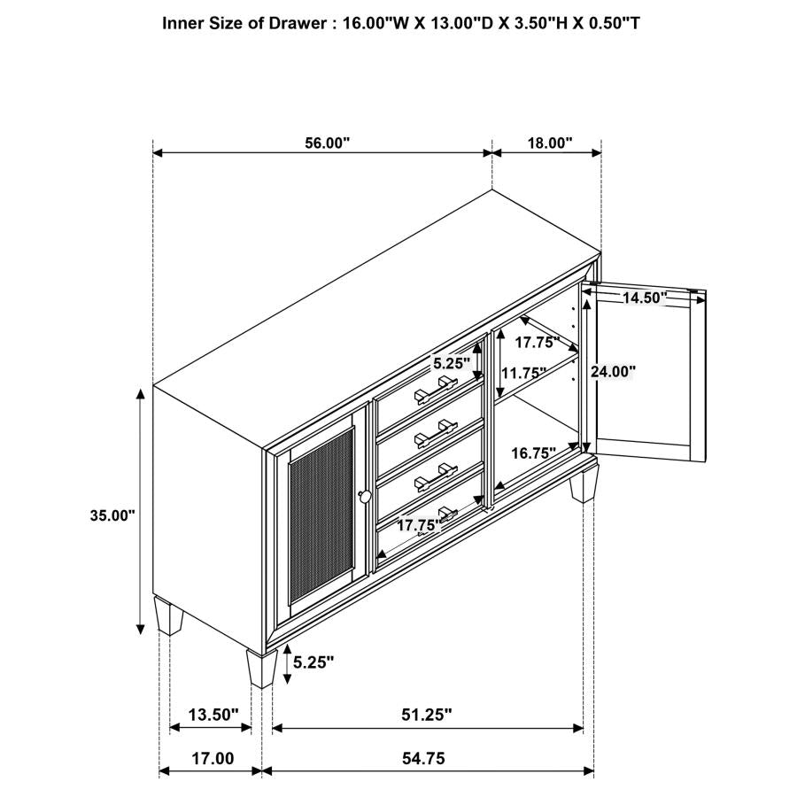 Sideboard: 56.00" W x 18.00" D x 35.00" H | 144.88 lbs