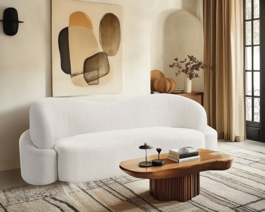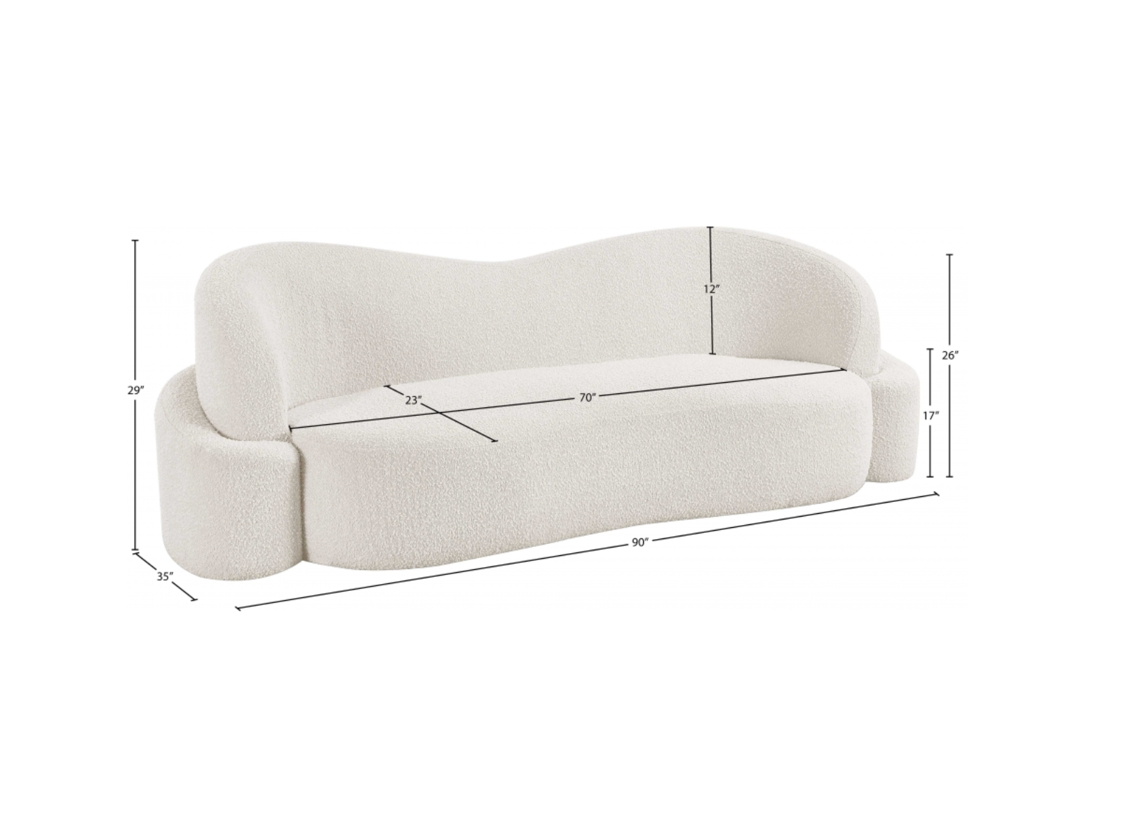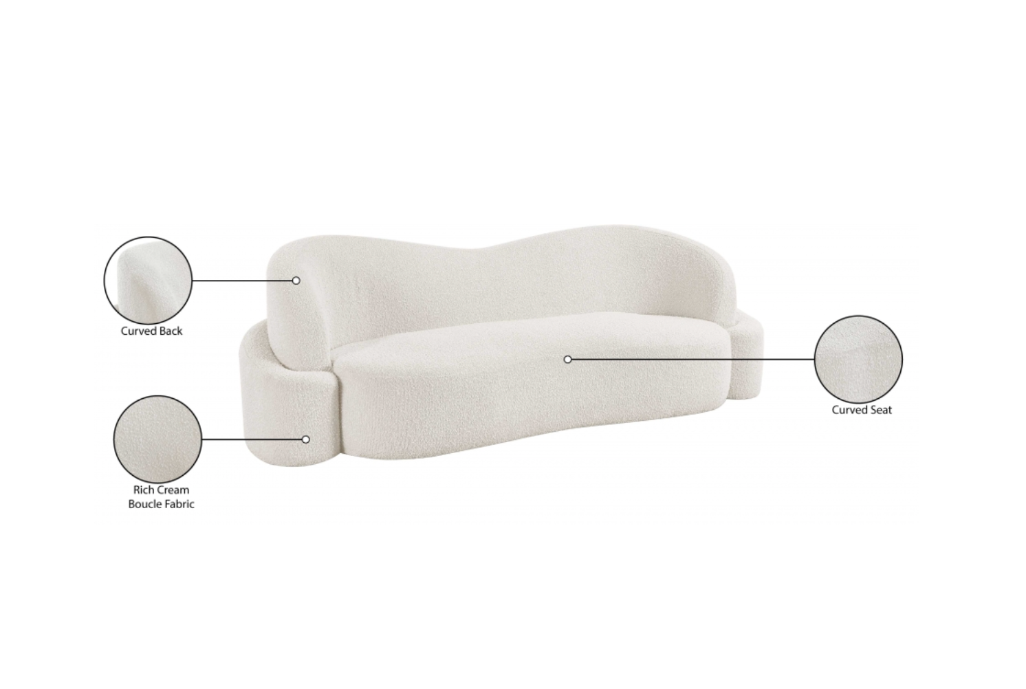 Bring cozy style to your space with the Luna Boucle Sofa. Wrapped in soft cream boucle fabric, this 90-inch sofa features a gently curved back and seat for a modern, relaxed vibe. Perfect for living rooms, bedrooms, or studios, it’s as comfortable as it is stylish.