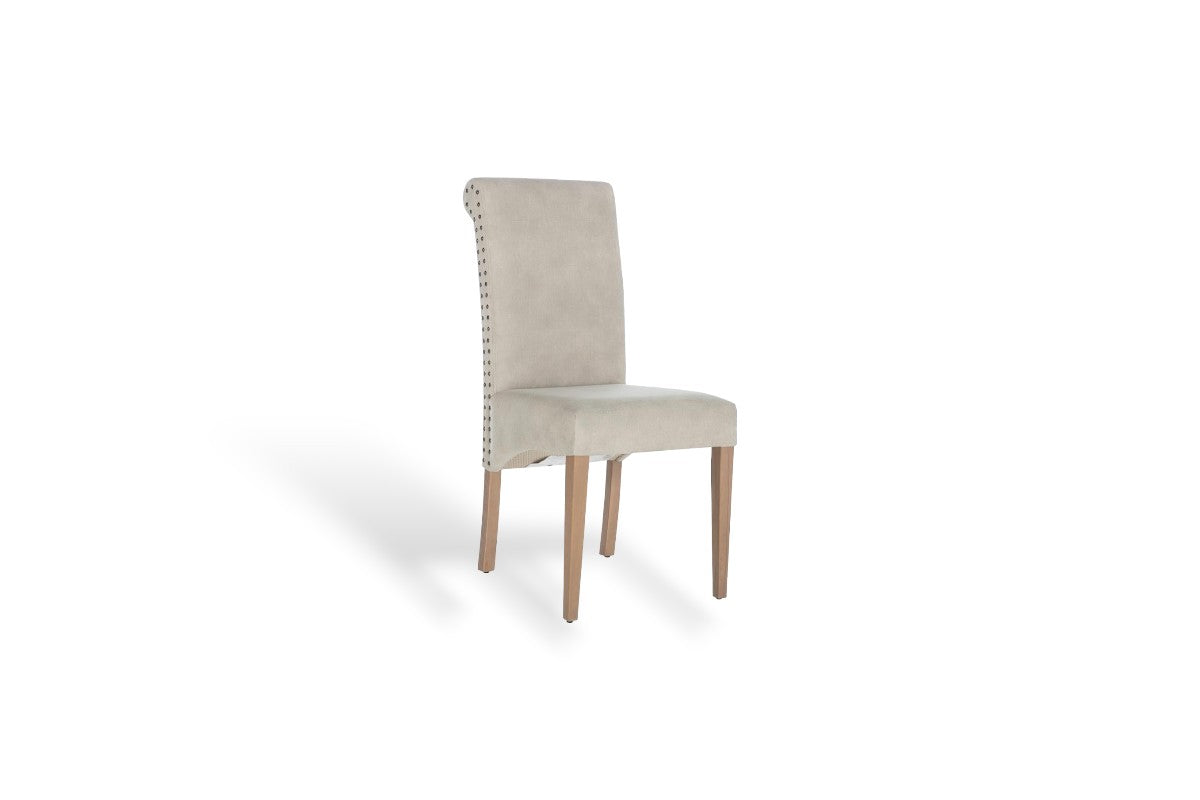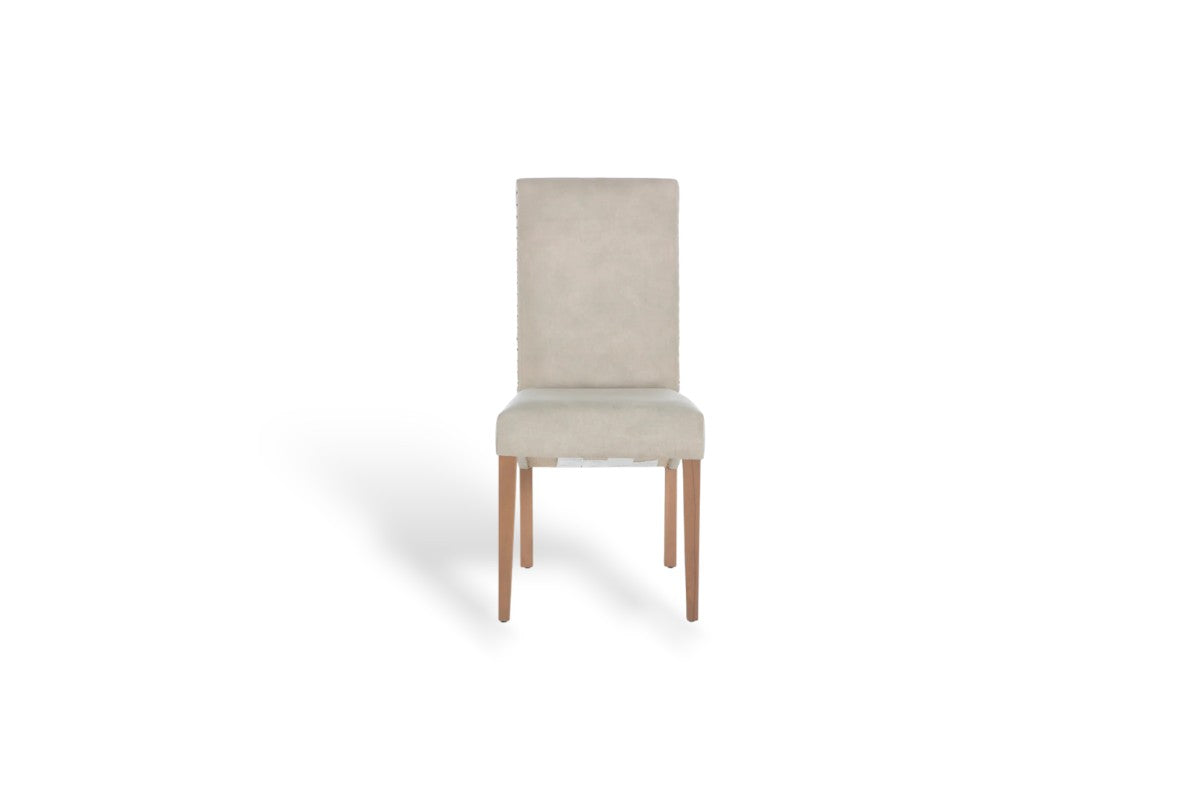 The Margo Dining Chair, a superbly crafted piece made in Turkey. This exquisite chair showcases a luxurious beige upholstery, expertly tailored with high-quality fabric for both comfort and style. Its sturdy wooden legs provide a strong foundation, ensuring long-lasting durability.
