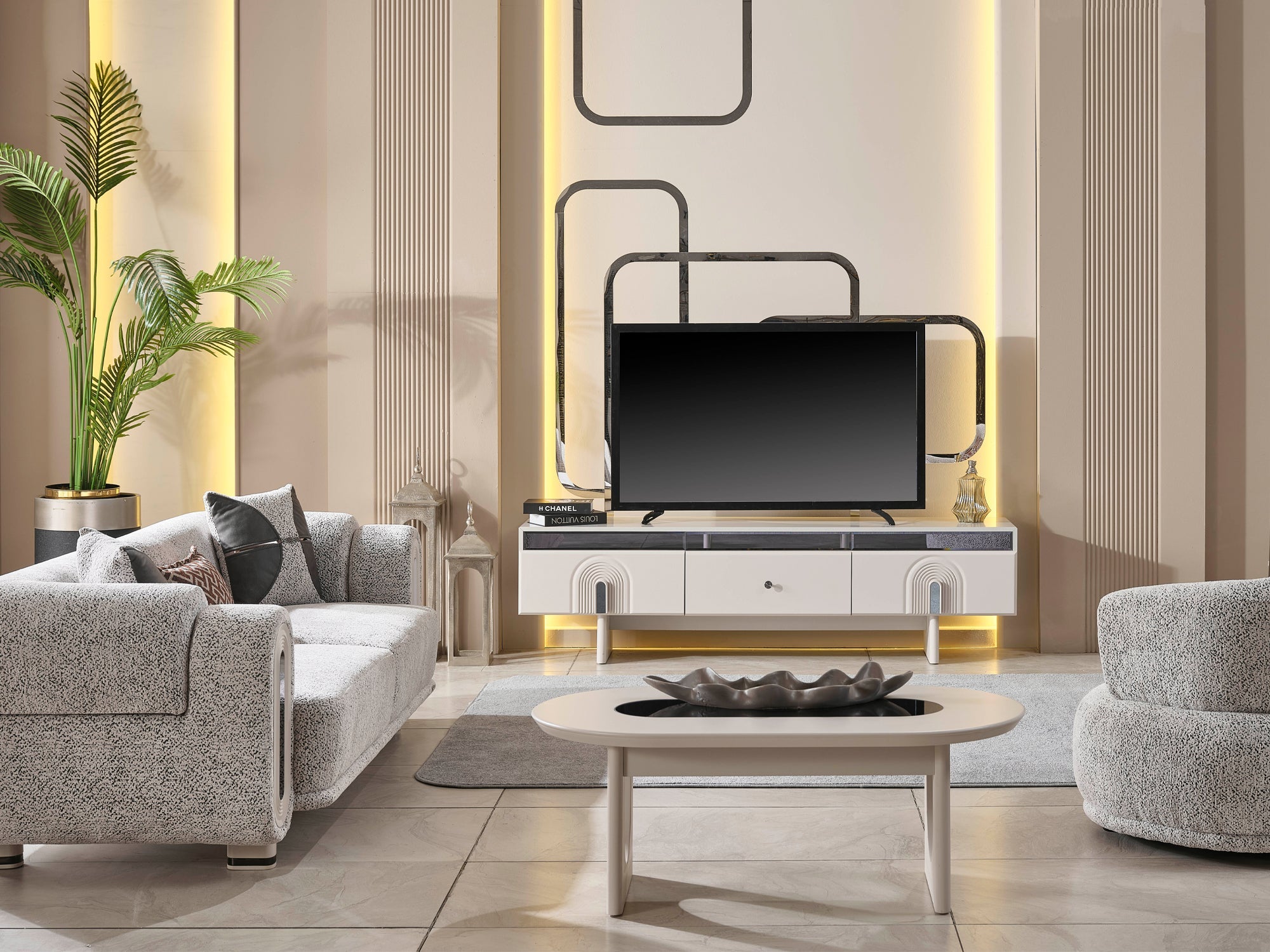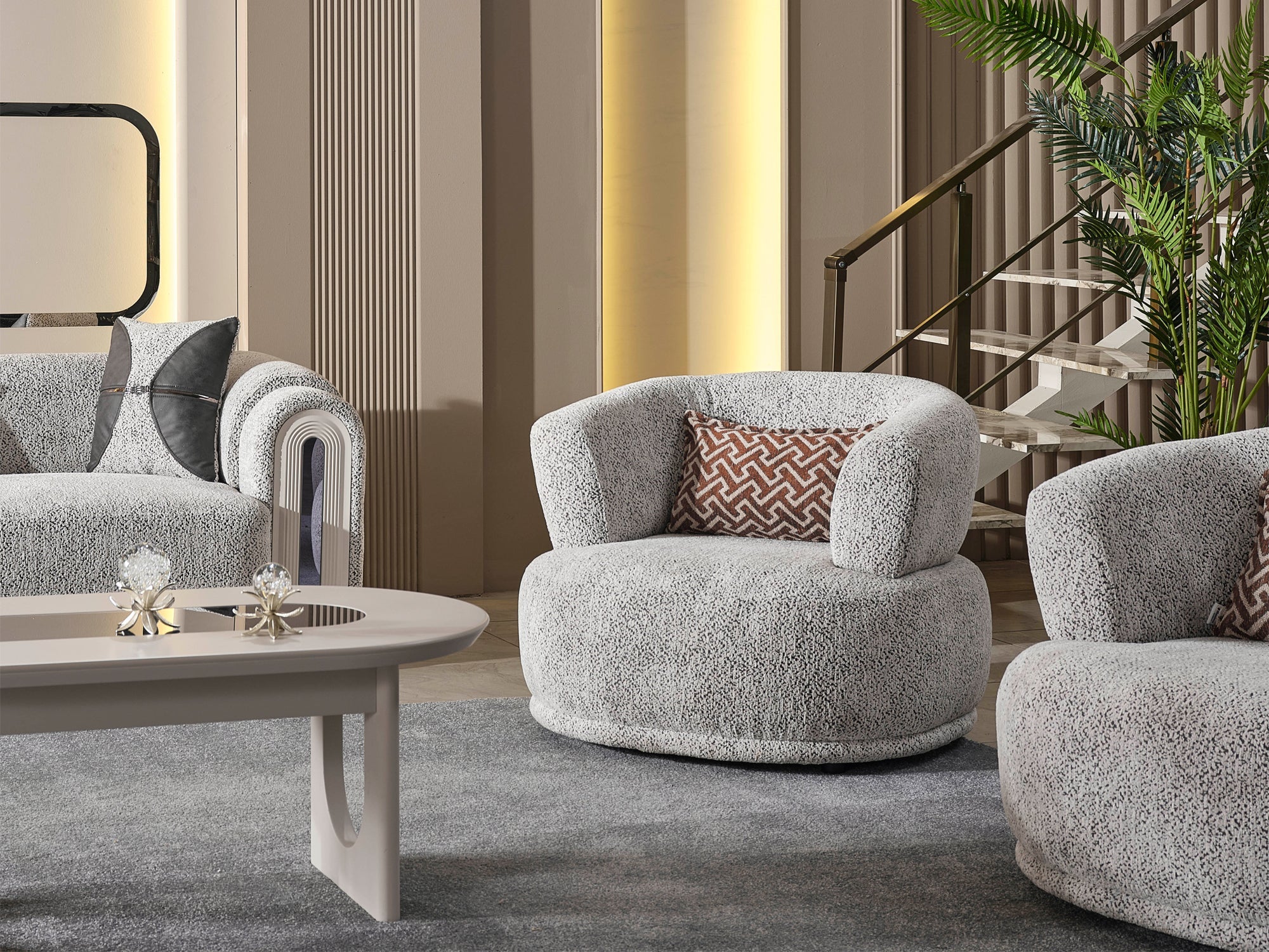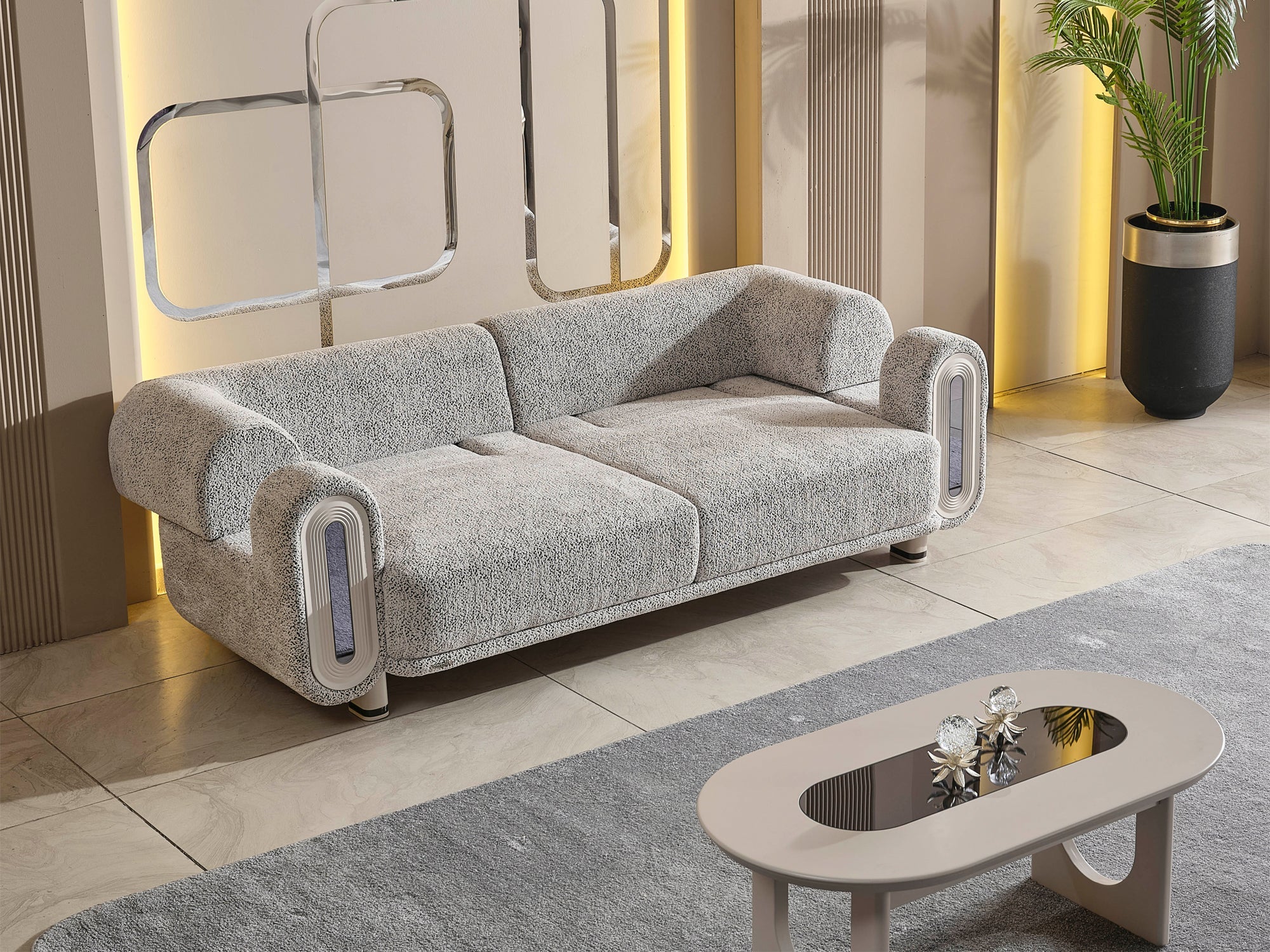 The Parma Sofa Set blends modern design with exceptional comfort, bringing a refined and distinctive character to your living space. Its soft-textured premium fabric, elegant geometric lines, and bold silhouette reflect contemporary luxury at its finest.