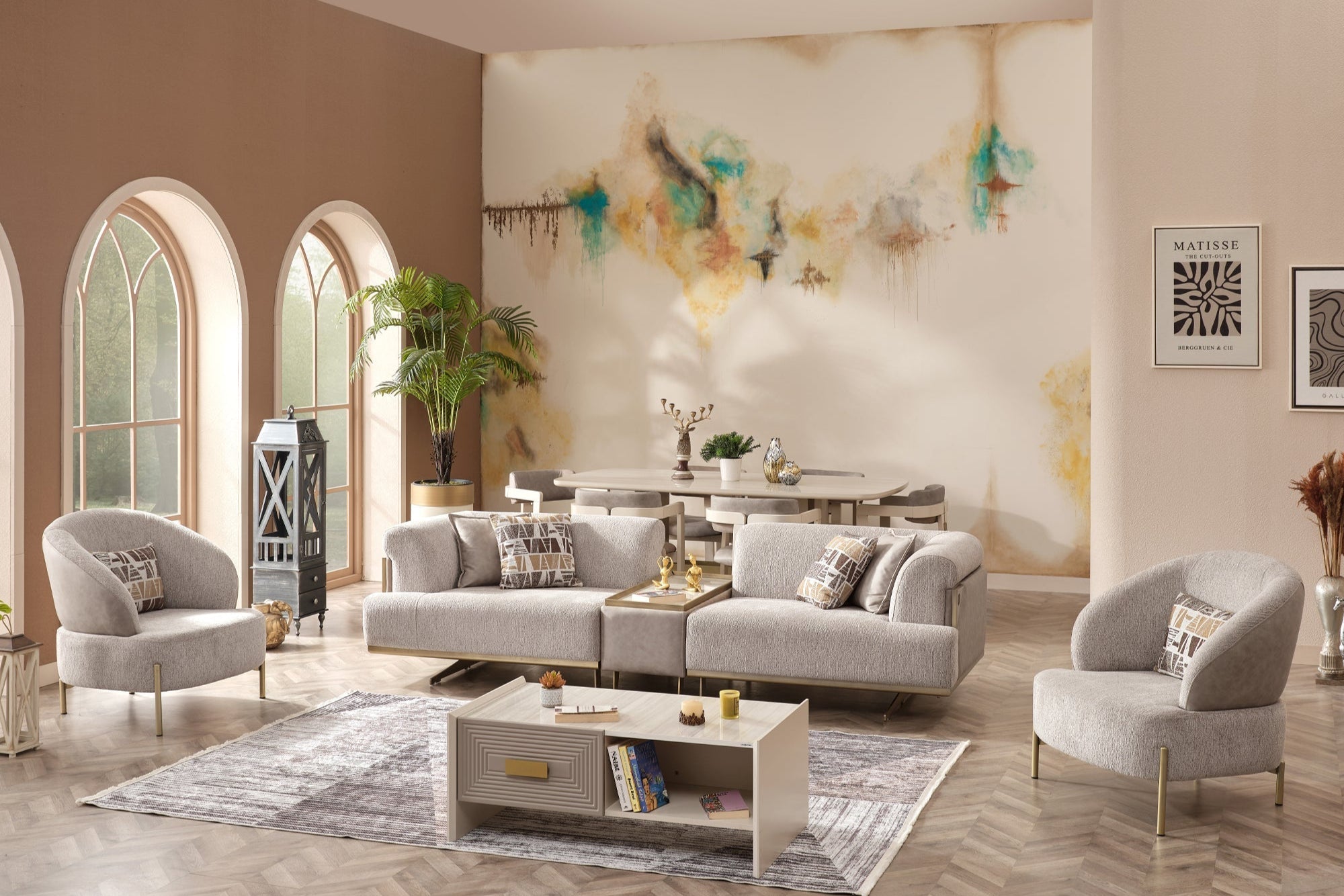 Designed with simple and minimalist lines, the Urla Living Room Set seamlessly blends modern aesthetics with comfort in your living spaces. Elegant details and specially designed metal legs make this living room set truly unique.